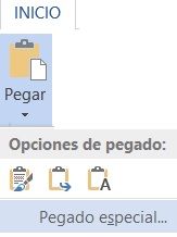- Clic a la cinta Inicio ► Clic a la opción de pegado ► Pegado especial.